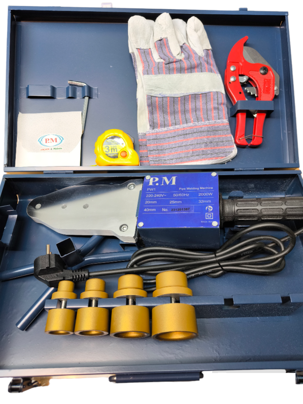چهار عدد لقمه سایزهای ۲۰,۲۵,۳۲,۴۰ ، قیچی ، متر ، دستکش ، جعبه فلزی