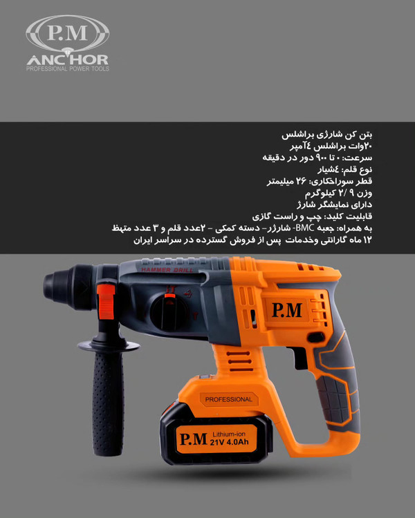 دریل بتن کن شارژی براشلس پی ام مدل 11253dc