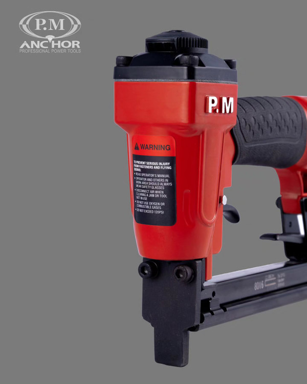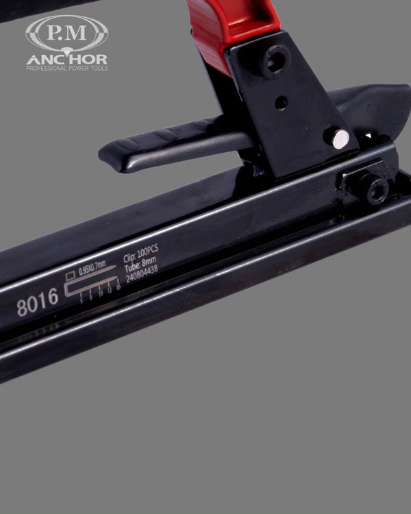 این ابزار بادی با استفاده از هوای فشرده کار می کند و فشار آن به اندازه ای بالا است که یک سوزن ۸ میلیمتری را در چند صدم ثانیه به آسانی در چوب نرم وارد میکند. لازم به ذکر است نیرو محرکه این محصول توسط کمپرسور در بازه فشار 70-100 PSI است. منگنه کوب بادی ضروری ترین دستگاه لازم برای انواع صنایع، تولیدی، صنعتی، کارگاهی، مبلمان و… می باشد. ظرفیت این منگنه کوب 100 سوزن منگنه در سایز 6 الی 16 میلی متر می باشد
