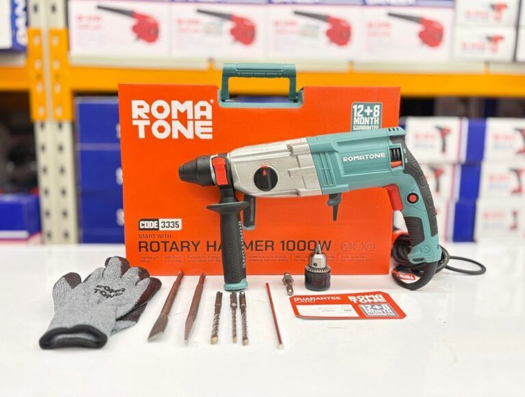 دریل بتن کن روماتون مدل 3335 یک دریل حرفهای و کاربردی برای پروژههای سنگین ساختمانی و صنعتی است. موتور این محصول توان 1000 وات دارد و سرعت چرخش آن به 800 دور در دقیقه میرسد. ظرفیت سوراخکاری در بتن 32 میلی متر، در فلز 13 میلی متر و در چوب 30 میلی متر در نظر گرفته شده است که طیف وسیعی از نیازهای کاری را پوشش میدهد. این محصول همچنین یک محصول سه کاره است که ست تبدیل نیز در بسته بندی آن موجود است