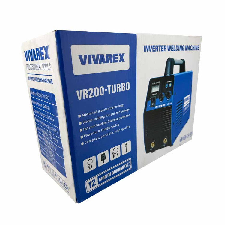 اینورتر جوشکاری توربو ویوارکس مدل VR200-TURBO دارای شدت جریان 200 آمپر واقعی است و مجهز به چهار عدد IGBT با کیفیت می باشد. همچنین این دستگاه دارای قابلیت جوش دائم الکترود 3 و جوش مقطعی الکترود 4 می باشد و مجهز به نمایشگر دیجیتال آمپر دستگاه است. این دستگاه دارای دو ولوم و دارای فن تهویه قدرتمند است. که همراه با کابل ، انبر و ماسک جوشکاری می باشد. این محصول مناسب مصارف صنعتی ، نیمه صنعتی و خانگی است و ساخت کشور چین می باشد.