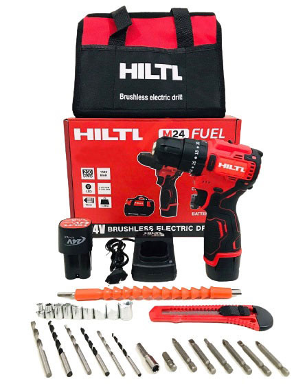ساخت کمپانی هیلتی ( model germany) - بسیار سبک ، کم حجم و بسیار پر قدرت - امکان سوراخکاری در بتن - دارای حالت چکشی - سیستم کلاچ ۲۰ مرحله ای در حالت دریل پیچ گوشتی - دارای کنترل سرعت ۶ مرحله ای (شش سرعته ) - امکان چپگرد و راستگرد - دارای گیربکس دوحالته ( قدرت و سرعت) - موتور براشلس ( بدون ذغال) - سیستم خنک کننده موتور - مصرف پایین باتری - دارای ال ای دی جهت نمایش میزان باتری - دارای ال ای دی روشن کننده سطح کار - یک پکیج کامل و پرقدرت که تمامی نیازهای شما را از یک دریل پیچ گوشتی چکشی شارژی پاسخ خواهد داد